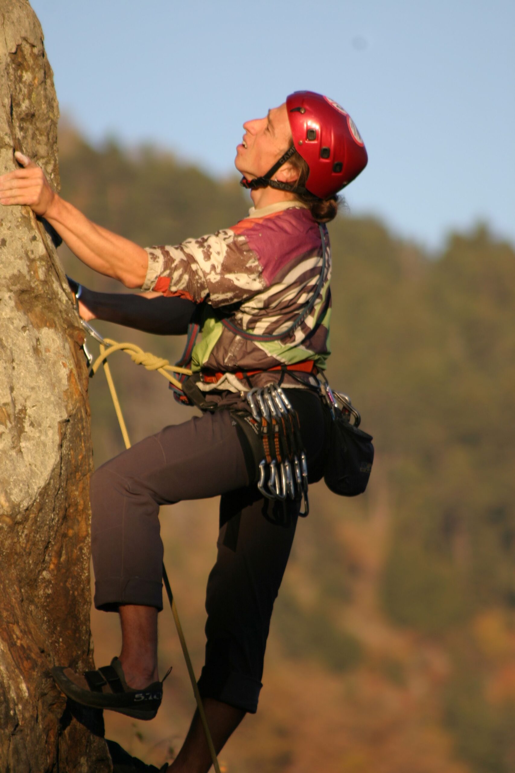 Frühe Kletterphase noch mit Velohelm...